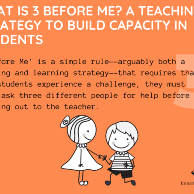by TeachThought Staff What is ‘3 Before Me’? ‘3 Before Me’ is a simple classroom strategy–arguably both a teaching and