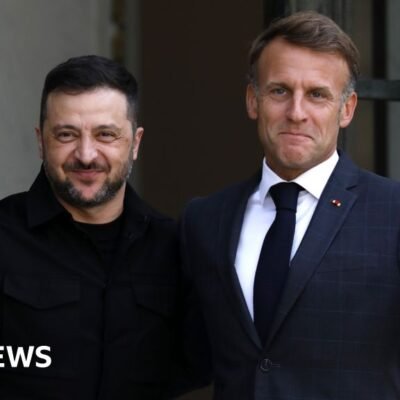 Paul KirbyEurope digital editor Getty Images Ukraine’s president joined France’s Emmanuel Macron for the summit at the Élysée Palace UK